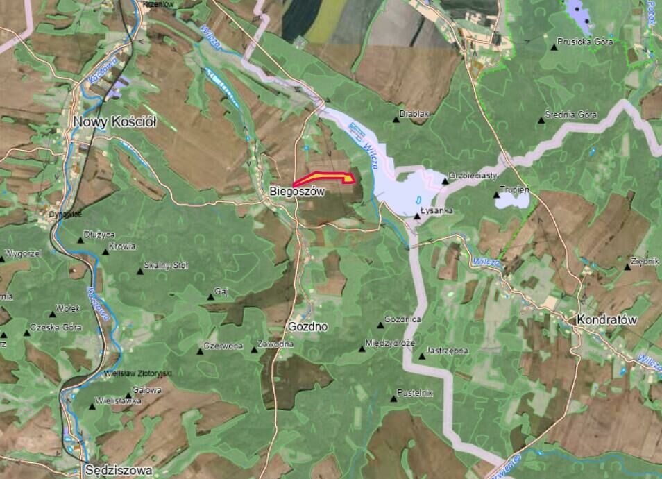 Działka inwestycyjna o powierzchni 62.000 m2 w Biegoszowie w gminie Świerzawa,m powiat złotoryjski. MPZP o przeznaczeniu PEF - tereny elektrowni słonecznej. Teren PEF o powierzchni ok. 49.000 m2, pozostały obszar o pow. ok. 13.000 m2 to tereny rolnicze RP.